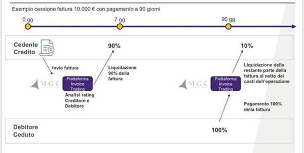 MGK, grazie ad accordi e partnership commerciali, è in grado di offrire alle piccole e medie imprese un servizio che consente di smobilizzare i crediti commerciali pendenti in maniera veloce e flessibile tramite piattaforma online, senza ricorrere al sistema bancario e senza segnalazione in centrale rischi. Tutte le cessioni avvengono nella forma pro-soluto IAS compliant, migliorando la PFN e quindi il rating aziendale.